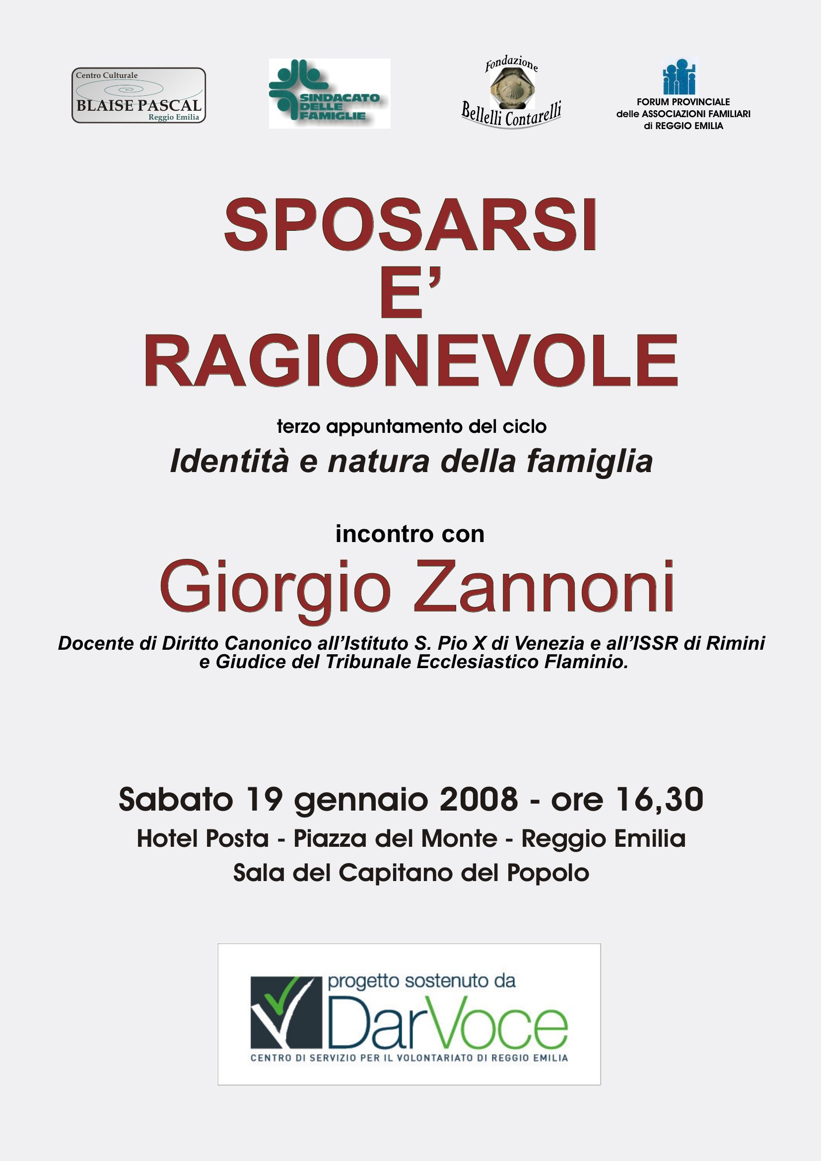 Organizzato da: Centro Culturale Blaise Pascal, Sindacato delle Famiglie, Fondazione Bellelli Contarelli, Forum Provinciale delle Associazioni Familiari di Reggio Emilia